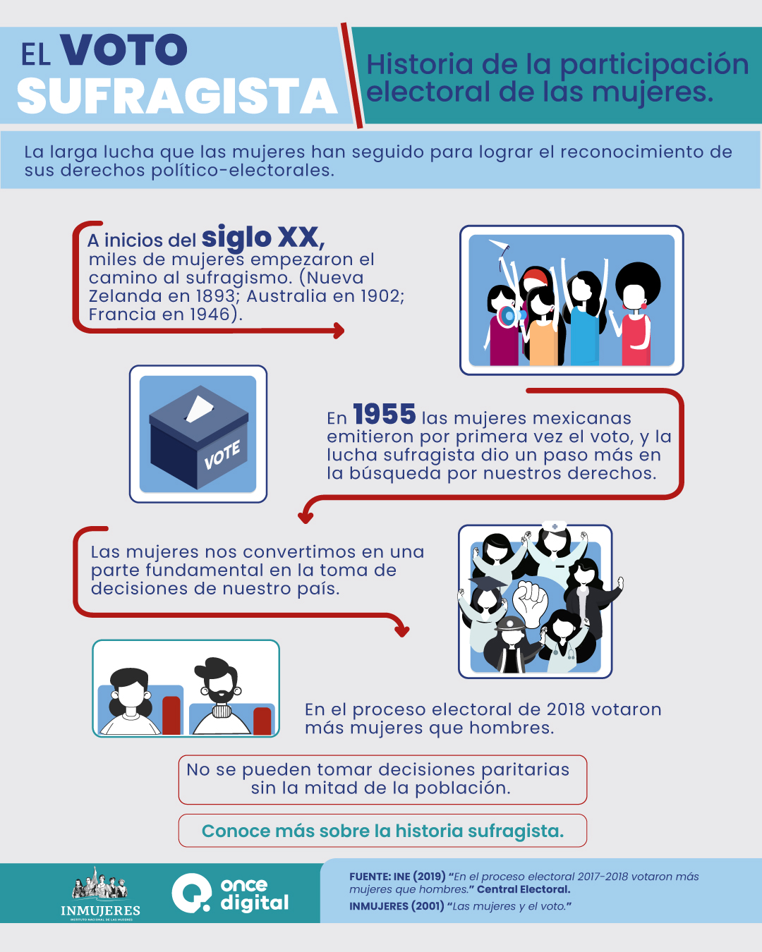 Diversos somosConseguir el voto de las mujeres no fue miel sobre hojuelas. Sucedieron muchas cosas a lo largo de muchos años para que llegáramos a las urnas el 3 de julio de 1955.